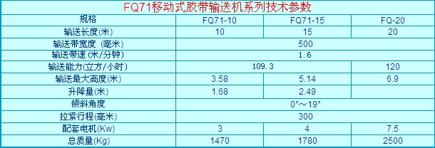 FQ71-10、FQ71-15、FQ-20移動式膠帶輸送機系列。